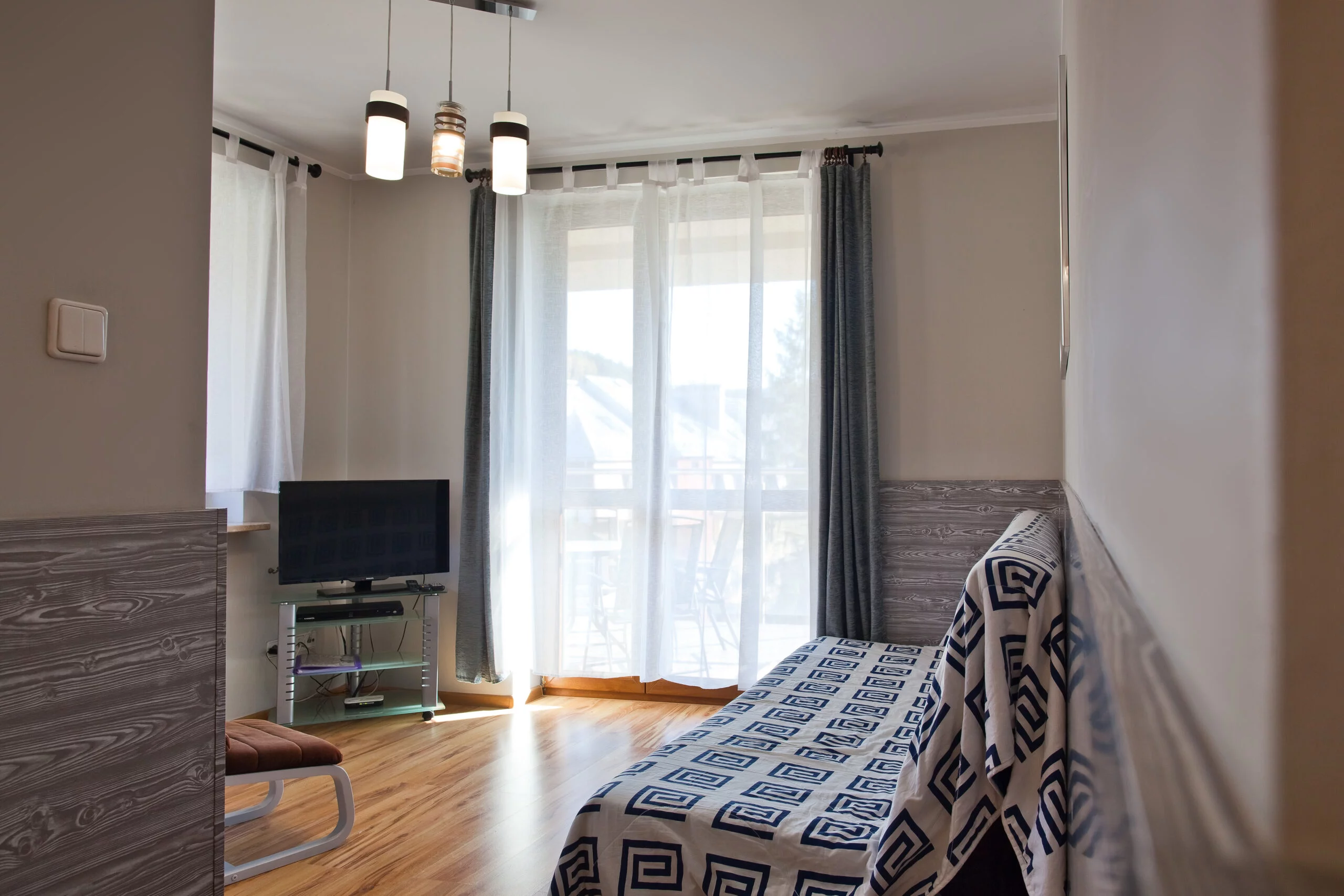 Przestronnego salonu z wyjściem na balkon